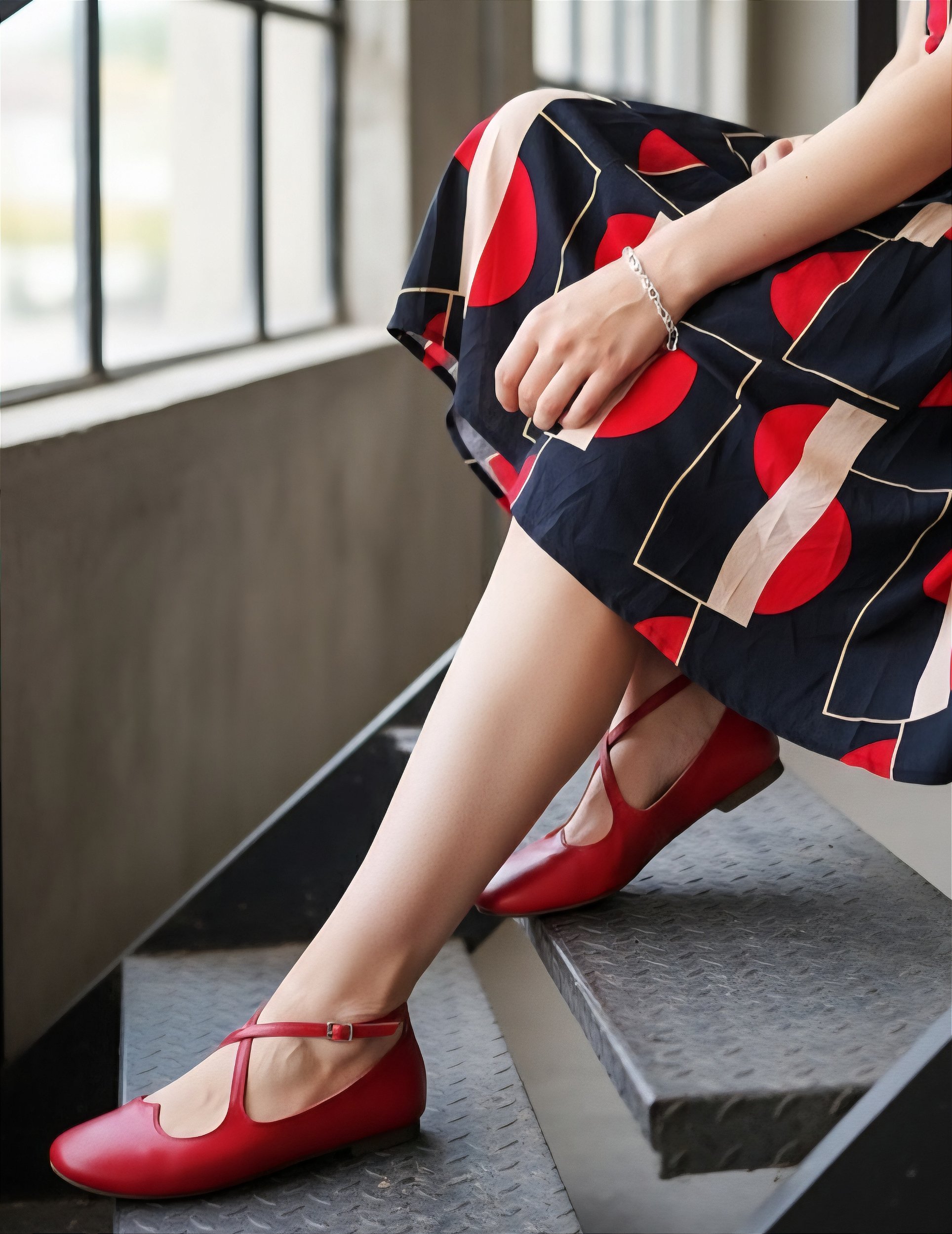 Sapato estilo sapatilha em couro na cor vermelha com detalhe recorte em formato de "coração".
