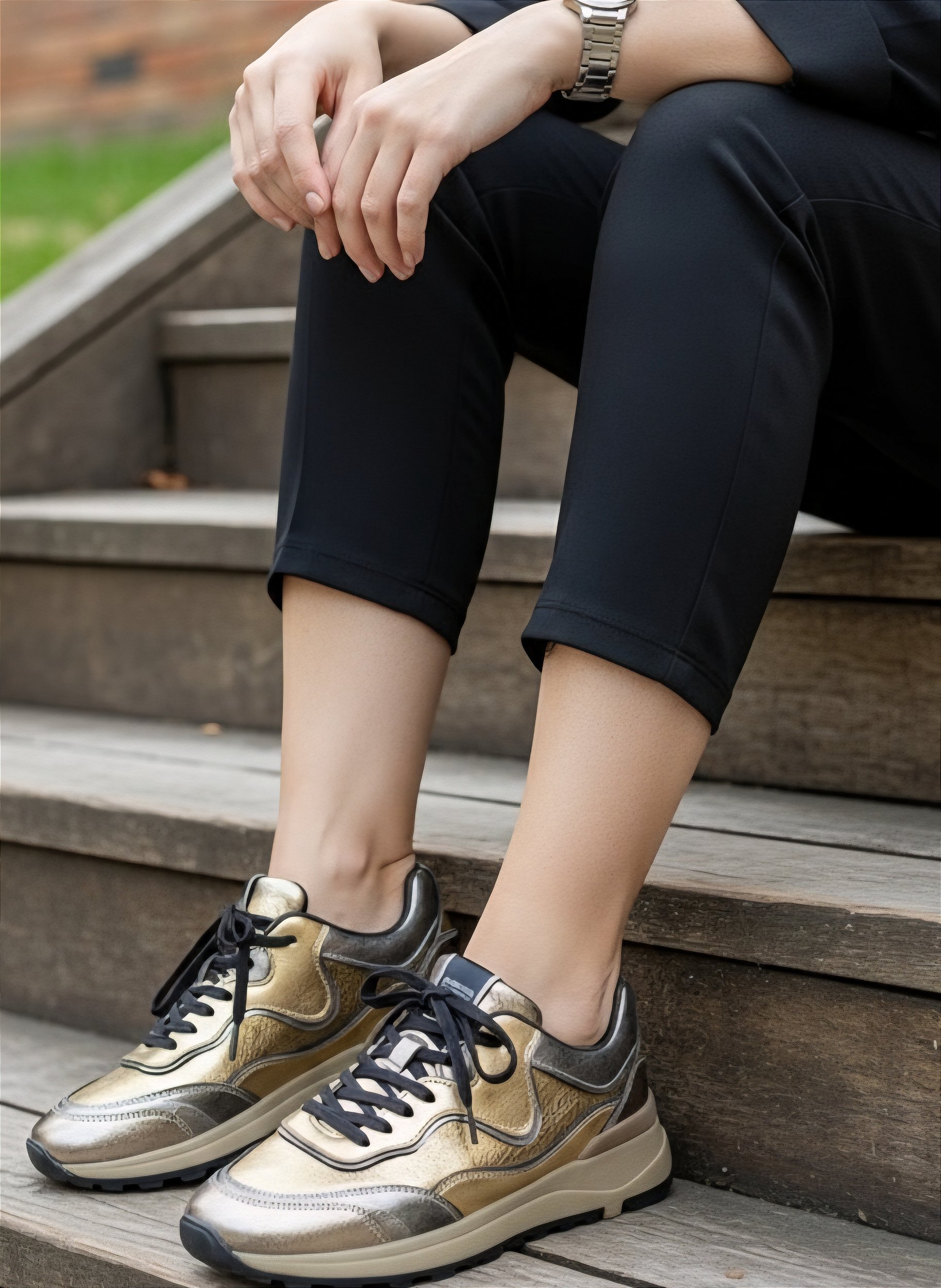 Este must-have metalizado não apenas segue as tendências, mas as define. Projetado para mulheres que desejam se destacar na multidão, o Retrô Gold é ideal para as mulheres modernas e estilosas que buscam algo mais do que um simples tênis. Repleto de detalhes que elevam seu look e garantem que você estará sempre na moda, independentemente da ocasião.